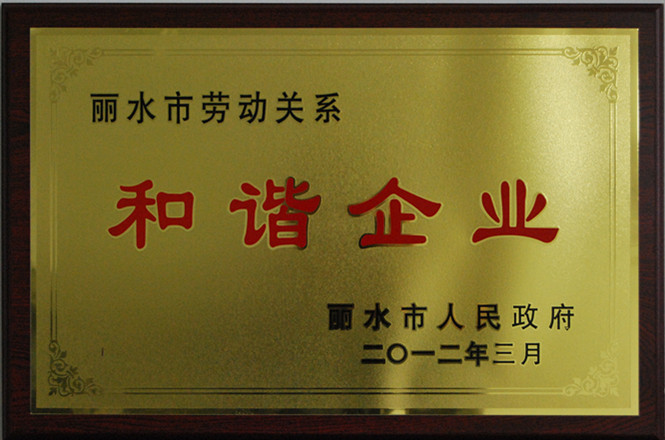 日前,集團公司被麗水市人民政府授予勞動關系和諧企業