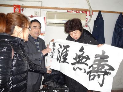 終于,神色焦急的楊先生進入了宣主任的視線,她主動上前詢問。一聽到有人撿到包,楊先生心情很激動,趕緊跟著宣主任到行包受理室查問。最后經過核對確認,小田撿到的包正是他丟失的;經清點,包內物品一件不少。楊先生說,他是代表山東泰山文化藝術研究院來麗水聯系中國藝術文化交流的;筆記本電腦里全是文化交流的資料,對他來說非常重要,他非常感動,非要重重酬謝小田和宣主任不可。當楊先生聽到宣主任說,東站的工作人員拾物都會上交歸還時,就對東站的領導給予員工的教育培養深表欽佩。為表示感謝,楊先生堅持要贈送給小田一幅他的墨寶“壽無涯”,喻示著好人一生平安,好人長壽無疆。