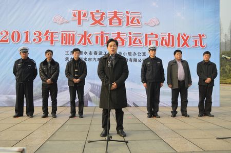 1月25日早上8:45分,“2013年麗水市平安春運啟動儀式”在西站舉行。麗水市副市長葛學斌、市交通運輸局局長葉沙平、副局長沈利文、集團公司黨委書記、董事長陳建敏、總經理薛和有,以及市公安局交警支隊、高速交警麗水支隊、市公路局路政支隊、市運管運政支隊和集團公司相關單位人員出席了啟動儀式。儀式由麗水市政府副秘書長姚志強主持。葛學斌副市長、春運領導小組組長宣布2013年春運全面啟動。
