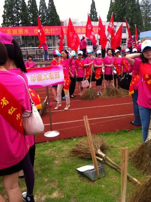 5月15日,在城北小學舉行了麗水婦聯組織的“美麗麗水,巾幗先行”創衛活動啟動儀式。東站積極響應市婦聯號召,派巾幗文明崗成員參加了“我志愿、我光榮”志愿者清掃衛生死角、巾幗文明崗結對商鋪創衛行動。此次行動主要是針對市糧油批發市場各商鋪,開展糾正陋習,整潔清掃工作,從而達到改善麗水人居環境,美化城市的目的。