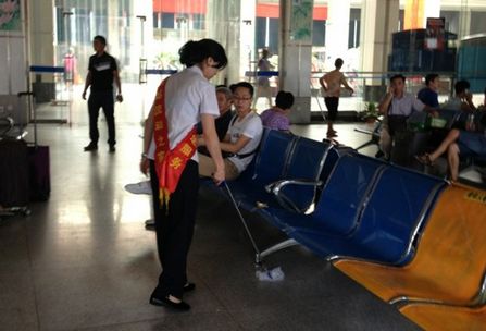 創衛工作是當前西站各項工作中的重中之重,客運西站實行全站員工總動員,要求每位員工做到視線內我就是保潔員,在確保完成本職工作的同時,全力以赴打好這場創衛攻堅戰,實行“客運工作與創衛工作兩手抓,兩手都要硬?!?br/> 踏進站前廣場,你會看見保潔員拿著掃把、簸箕不停的巡視,及時的清理;買票時,你會時不時看見保衛稽查人員拿著長柄鑷子在清理;候車時,推著服務車的西站服務班工作人員在為旅客提供服務的同時也拿著長柄鑷子清理地上的垃圾;上車時,你還會在發車區看見檢票員跟調度員在發車間隙拿著長柄鑷子及時清理正在上車的旅客丟下的垃圾。不遠處的場地上,是拿著鑷子和垃圾袋的值班站長的身影。