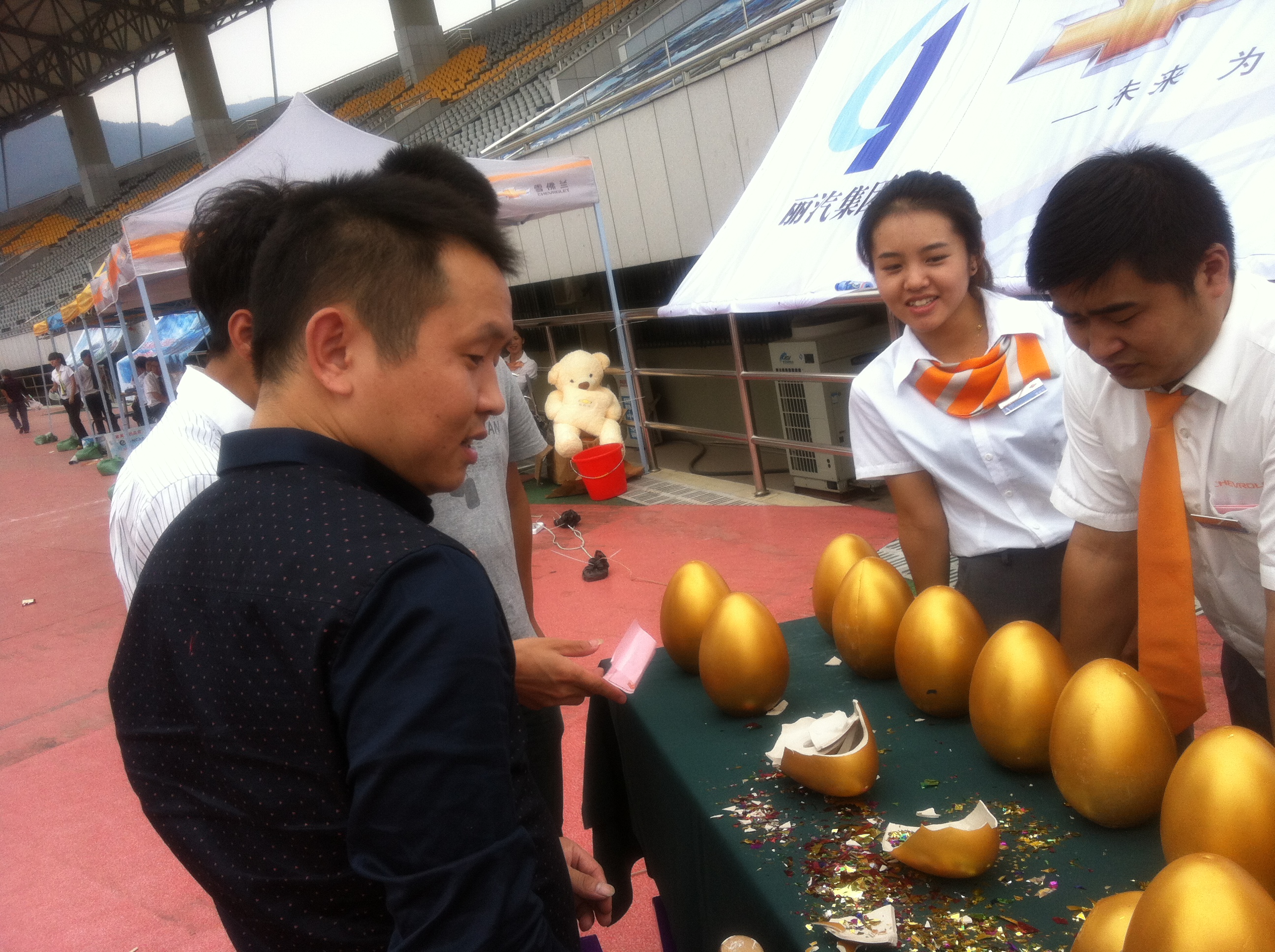 在9月26日-10月1日舉辦的“2013麗水市首屆現代生活博覽會--國慶汽車展”上,甌龍雪佛蘭創新銷售方式,以“購車砸金蛋”、舉辦新車上市會和現場顧客互動等活動方式吸引顧客。展銷期間現場訂車數達到了50輛,使9月份整車銷售實現了74輛的成績,環比增長了21.31%,再創新高。