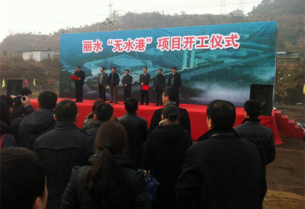 2013年12月25日上午9點,省重點項目--麗水“無水港”項目開工儀式舉行,市人大常委會黨組書記、副主任金建新、副市長陳重出席開工儀式。市直相關部門負責人、水閣街道代表、施工單位代表、城投公司領導和麗汽集團公司領導等100多人參加儀式。