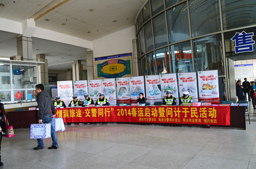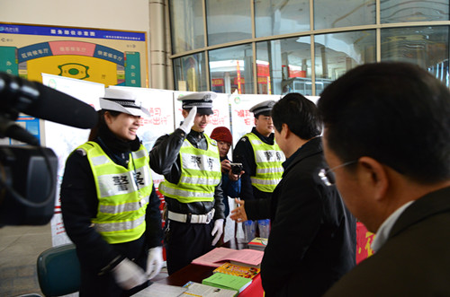 今天上午,2014年春運工作正式啟動,市交警支隊、高速交警支隊、市運管局、麗汽集團等單位在客運西站為旅客提供服務。正在西站檢查春運工作的副市長葛學斌專門前來慰問了現場工作人員,與大家一一握手。