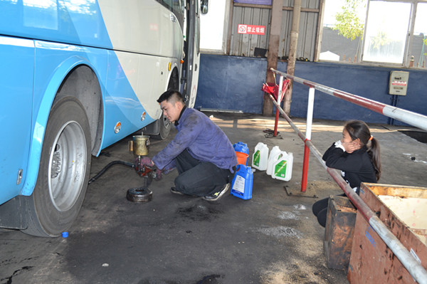 修理車間內,修理工管巧全正專心致志的為一輛車子加齒輪油,旁邊一位小姑娘翹首張望,我走了過去,“都這個點了,應該都趕回家吃年夜飯了吧?”旁邊一位駕駛員滿臉歉意地說:“是啊,是我耽誤了小管的時間,本來是說好兩小時前到的,過來只是想碰碰運氣,沒想到小管還在等我。” “不急,我家就住在附近,你看,我女兒都來等我了,等你再開回龍泉,可趕不上年夜飯了?!惫芮扇f著,指了指一旁的小姑娘?!靶∨笥?,等爸爸吧,難等嗎?”看著聚精會神地蹲著的小姑娘,我問道。“奶奶和媽媽已經做好飯了,可是爸爸說,等他把這些瓶子里的油一滴不剩地喂給這輛車子吃了,我們就能回家吃年夜飯了?!比缓?,她伸出稚嫩的小手“一、二、三……”地數著地上的空瓶。