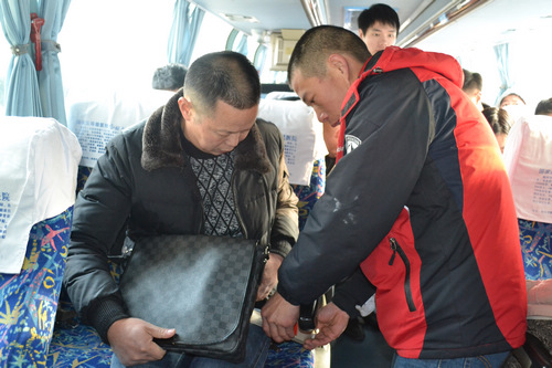 “加班到金華的駕駛員已經報班!”1月17日13:00分,駕駛員曾國偉準時來到車隊簽到,半個小時前,曾國偉還在親戚家喝喜酒,接到13:30要開加班車的任務,他沒來的及等吃完飯就趕到了單位。同事問起來時,他幽默地說:“春運了,隨時都有加班任務,哪敢隨意喝酒啊,這可是系著一車旅客的安全?!?br />說話的工夫,他來到班車上試了試燈光,檢查了機油和水位,試發一下發動機,隨后又敲了敲輪胎,各項正常。開車前,他拿起了茶杯,卻只是稍稍抿了一小口,出車前,不敢多喝水,生怕影響行車,這也是他多年的習慣。隨著一聲哨響,曾國偉駕駛的班車也緩緩地駛出了客運西站。