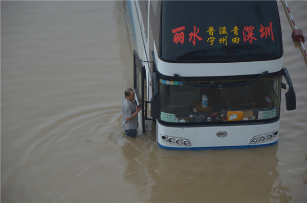 浙南網:浙江麗水遭遇50年一遇大洪水“水中”的東站