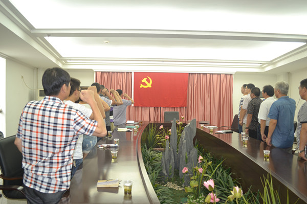 會上,全體黨員面向黨旗莊嚴宣誓,重溫入黨誓言,并學習《黨章》相關內容,詹慧文書記代表黨支部作對照檢查,針對“四風”等方面存在的問題,進行了深入查擺。