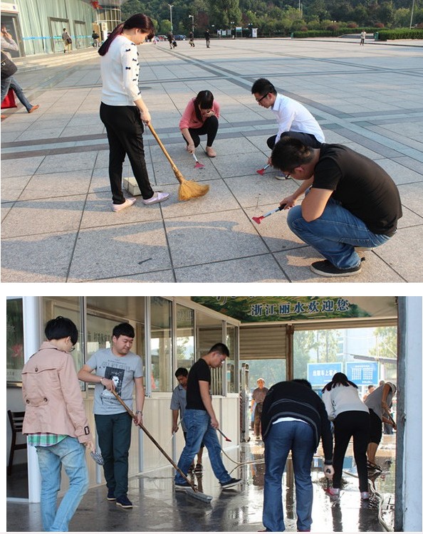 10月15日下午,西站片區團支部部分團員在西站黨支部書記雷文華同志及團支書蔡蜜同志的帶領下,清掃了西站旅客出口處以及站前廣場。