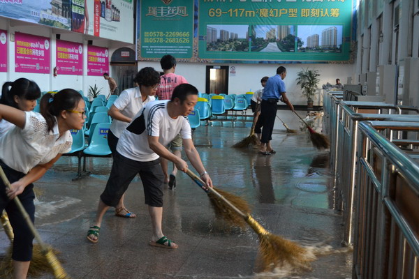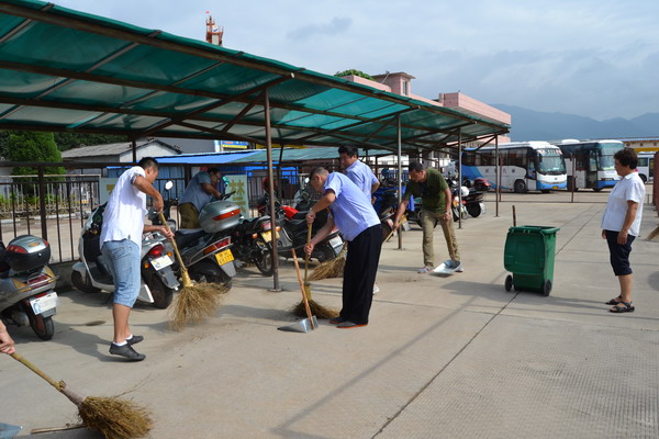 在客運東站全體員工的共同努力和兄弟單位的共同幫助下,災后第二天,客運東站就恢復了正常運營。為徹底清除災后留下的站場內外衛生死角,22日,東站黨支部繼續組織全體黨員和團員對東站災后的站場內外衛生進行了打掃。